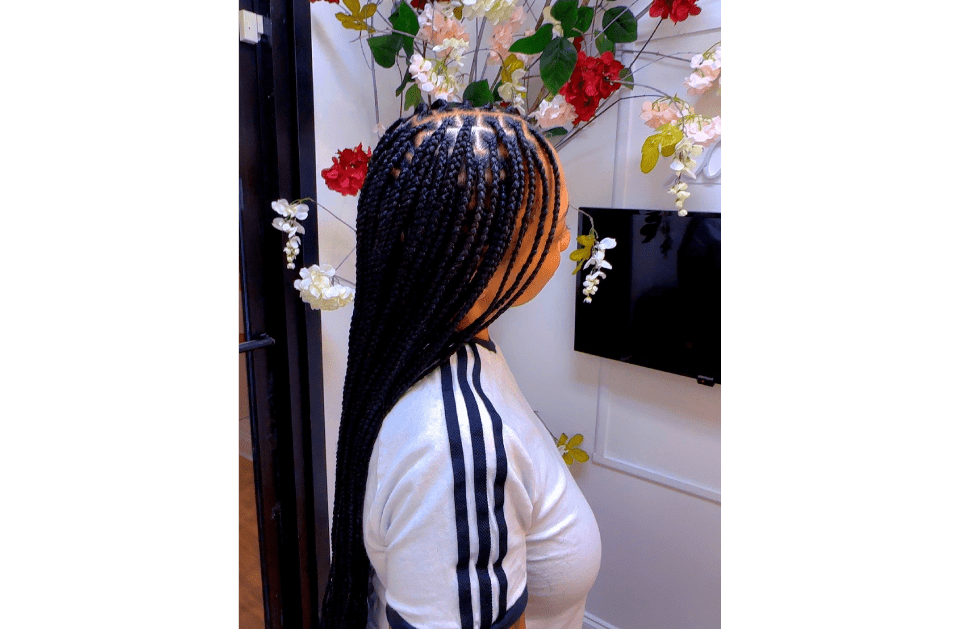 Knotless braids are applied with skill to provide comfort and a seamless appearance.